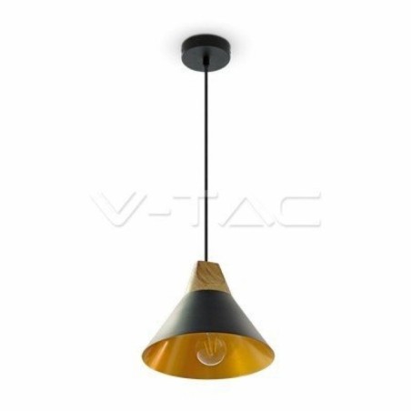 Lampadario LED a Campana in Alluminio e Legno con Portalampada E27 (Max 60W)